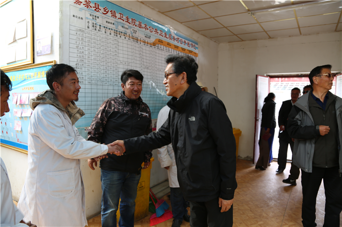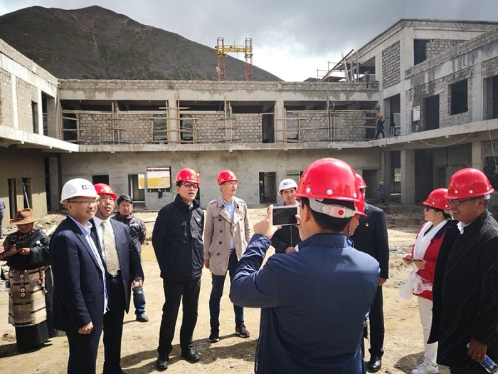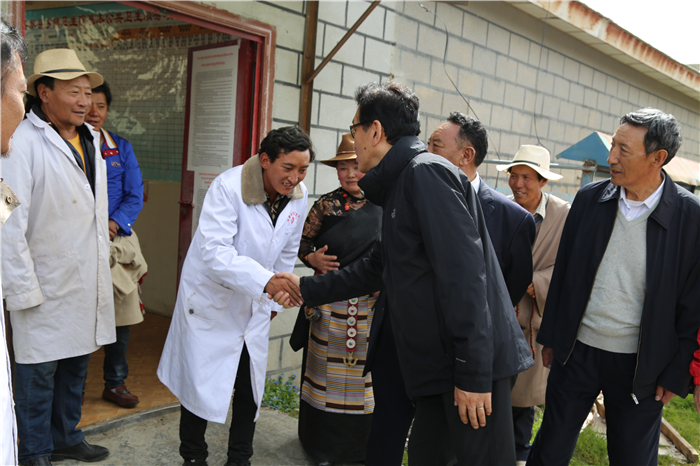 2018年了8月9日,受阜康邀請,西藏自治區政協副主席、區工商聯主席、區總商會會長阿沛·晉源,拉薩大昭寺管家洛桑,西藏自治區社會科學院原處長次旺仁青,西藏阜康醫療股份有限公司黨委書記、董事長王斌,西藏阜康醫療股份有限公司黨委副書記、副總經理陳彬,西藏阜康醫院名譽院長嘎布,阜康生殖醫學中心實驗室主任劉鋒,阜康體檢中心主檢師瓊瑪,阿沛·晉源主席秘書旦增一行早上8點從拉薩出發,一路顛簸馳騁于下午2點50分許抵達那曲地區嘉黎縣夏瑪鄉。聽說晉源主席要來視察衛生院的建設工作,嘉黎縣縣長吾金不顧受傷的左腿帶領當地干部群眾早早等候在夏瑪鄉衛生院建設現場。