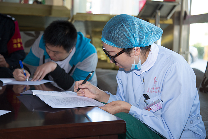 參加獻血的醫務人員填寫表格