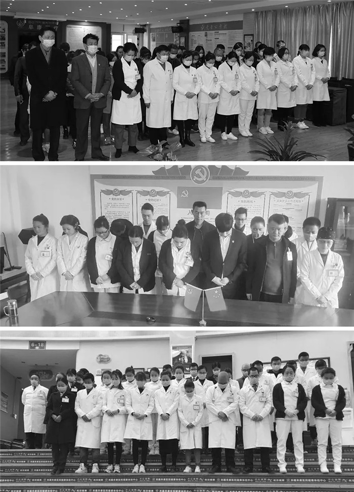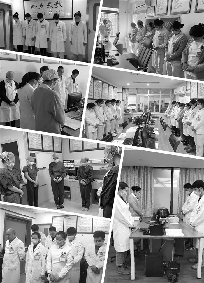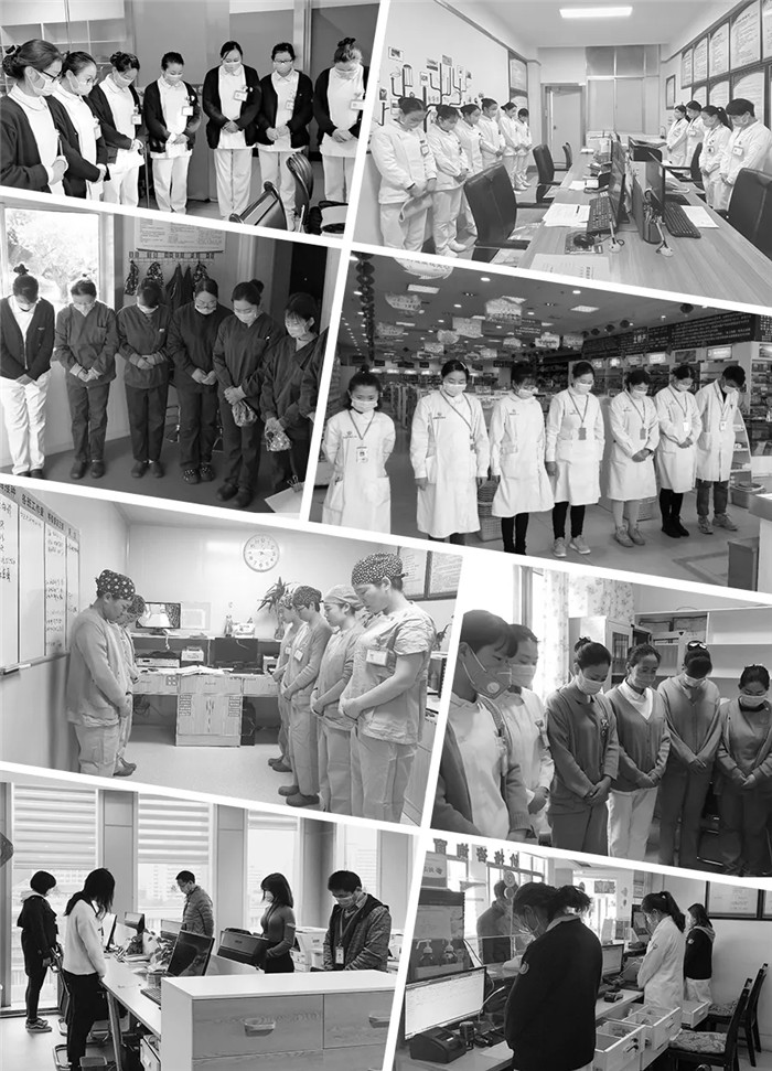 上午10點,隨著防空警報拉響,阜康醫(yī)療全體黨員和醫(yī)務工作者、行后人員分別在阜康醫(yī)院各院區(qū)、各科室、各藥房肅穆站立、低頭默哀。在這次疫情的特殊期間,有些人倒下了,但更多的人勇敢地扛起責任,在黨中央的堅強領(lǐng)導下和疫情頑強斗爭,如今我們已經(jīng)基本控制這場斗爭的局面,正在向全面勝利努力奮進。