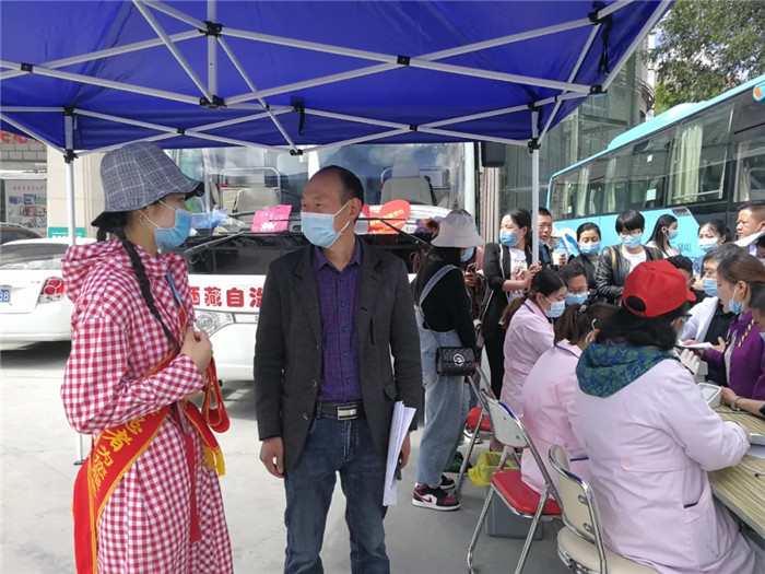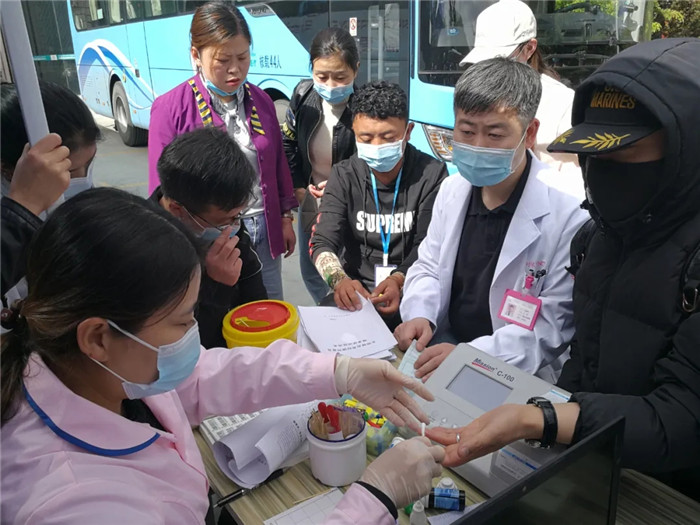 六月九日上午十點,西藏自治區血液中心的兩輛大巴開進了阜康體檢中心的大院。早已等候在此獻血的阜康員工,身影開始躍動。