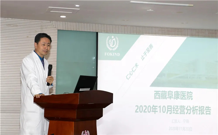 西藏阜康醫院總院長寧曉匯報10月份經營分析報告