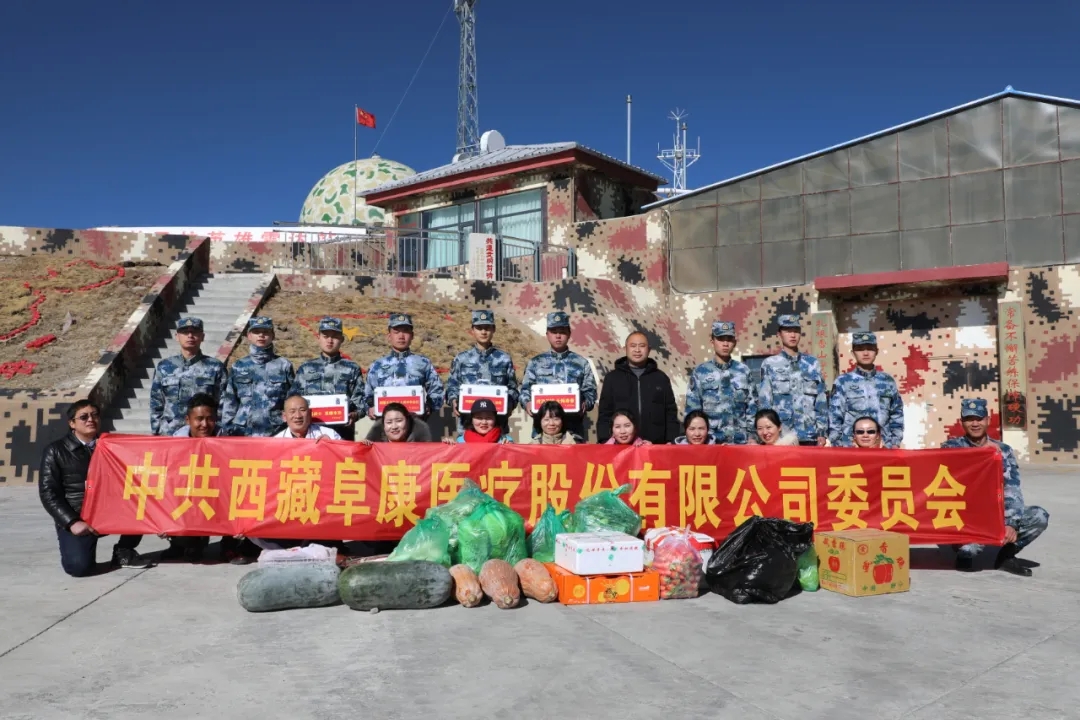 2021春節(jié)、藏歷新年剛過,元宵佳節(jié)即將到來,2月24日,受西藏阜康醫(yī)療股份有限公司黨委書記、董事長王斌委托,公司黨委副書記劉連福帶領(lǐng)十名黨員來到海拔5374米的甘巴拉雷達站陣地,親切慰問節(jié)日期間駐守在這里的廣大官兵。雷達站領(lǐng)導(dǎo)舒靈鋒、賈亞東熱情接待了阜康醫(yī)療黨委一行,并向大家介紹了廣大駐守官兵先進事跡。