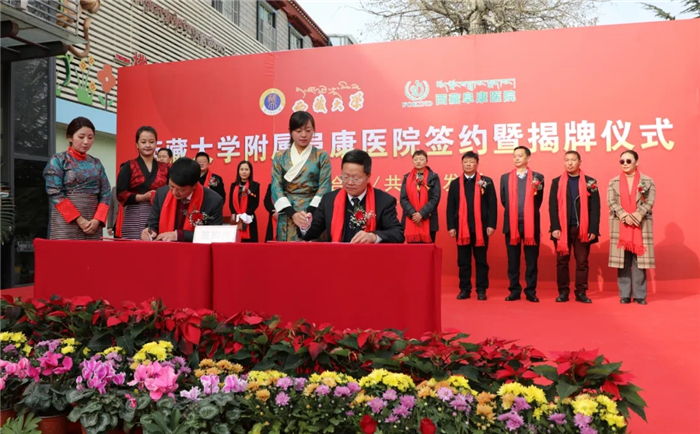 在現(xiàn)場各位嘉賓的見證下,西藏大學(xué)黨委副書記、校長紀(jì)建洲,與西藏阜康醫(yī)療股份有限公司黨委書記、董事長王斌在共建附屬醫(yī)院協(xié)議上簽字。協(xié)議的簽署,標(biāo)志著西藏大學(xué)和西藏阜康醫(yī)院開啟合作的新征程,雙方將攜手為西藏的高等醫(yī)學(xué)教育和醫(yī)療衛(wèi)生事業(yè)發(fā)展做出新的貢獻。