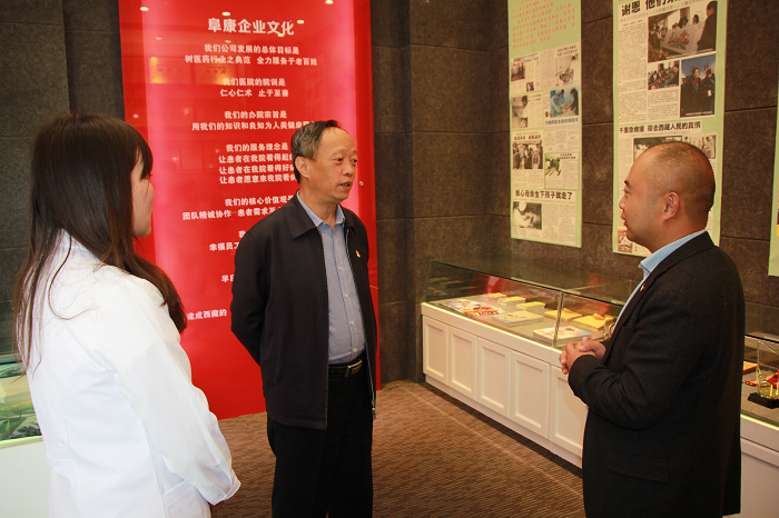 在阜康醫院五樓院史館,劉連福向劉家杰一行介紹了阜康醫療不平凡的發展歷程以及阜康人在黨的建設、抗震救災、公益事業、企業文化等方面的成就,劉家杰一行對阜康醫療各方面的工作表示充分認可并對"阜康”中所含的物阜民康——"物產豐富,民族安康”之意表現出極大的興趣,希望通過阜康人在醫藥領域的不懈努力,勇于攀登醫學高峰,為西藏的醫療發展貢獻力量。