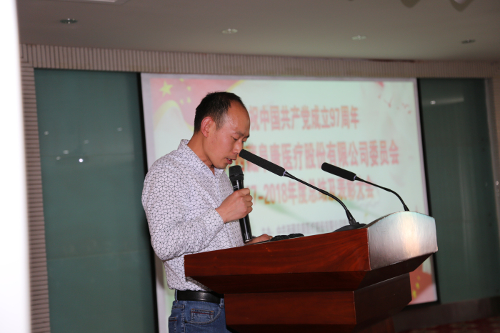 6月29日,"慶祝中國共產黨成立97周年暨中共西藏阜康醫療股份有限公司委員會2017-2018年度總結及表彰大會”在阜康婦產兒童分院4樓會議室隆重召開。公司黨委書記王斌,區黨委組織部組織四處(兩新工委辦公室)負責人沈策,公司黨委副書記陳彬、黨委委員劉瀟瀟、劉連福、楊國洪及全體黨員參加會議。