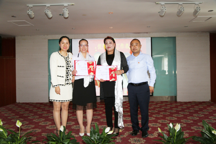 牛亞青、張政、雷羊州、劉秀等同志獲得"優秀共產黨員”稱號,何文秀同志、索珍同志獲得"優秀黨務工作者”稱號,義診組黨小組獲得"優秀黨小組”榮譽,阜康"老兵之家”支部委員會、中共西藏阜康藥店聯合支部委員會獲得"先進基層黨組織”榮譽。陳彬、何文秀、劉秀、李映、李燕科、江潤霞、孫自豪等7位同志獲得阜康雪域天使志愿者服務隊 "志愿者之星”。區黨委組織部四處和公司黨委領導為獲獎人員頒獎。